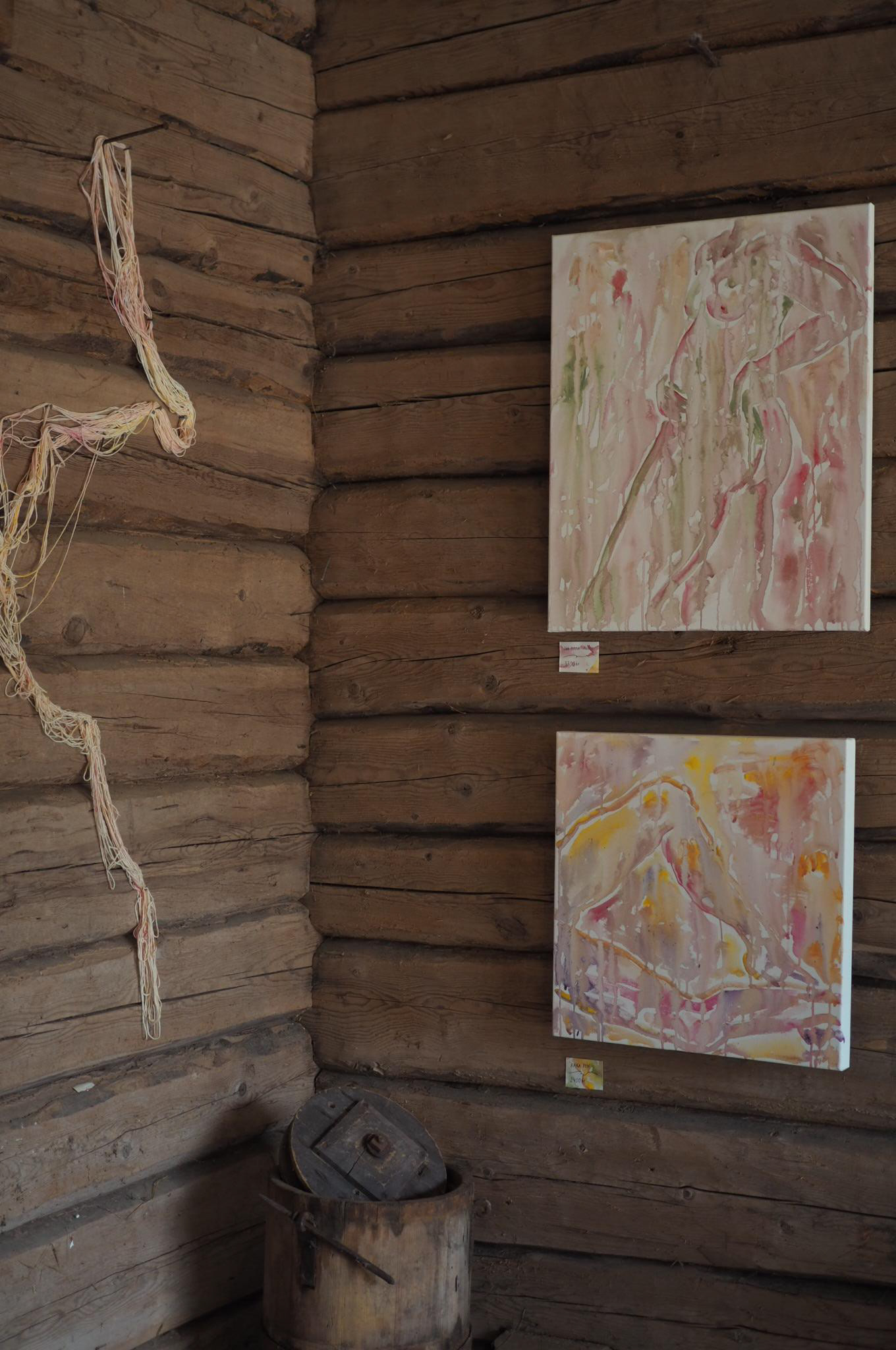 With support from Jonas Wahlströms minne's scholarship, I worked on and showed a mixed media exhibition on bodily belonging, identity and home. Working with watercolour, acrylics, collage as well as textile and yarn installations, I wanted to tap in to the layers of self that we always carry with us, and traced my own coming-into-being within the landscape that had surrounded me since birth.
